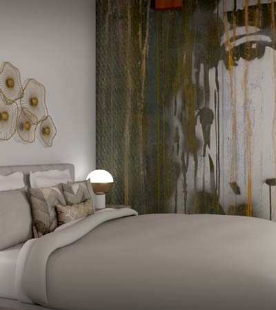 Una camera da letto che incarna l’unione di ribellione ed eleganza, con un’atmosfera grunge che trasforma l’ambiente in un’opera d’arte vivente.