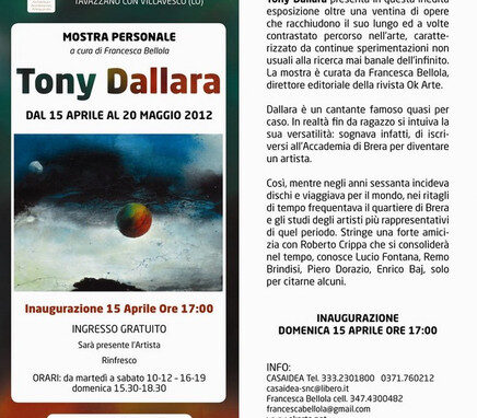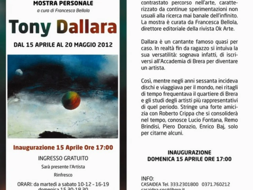 Tony Dallara, icona della musica leggera italiana nonché affermato pittore, Mike Ciafaloni, fondatore dell’ART-CO (Arte Compatibile) e dell’ART-TER (Arte Terapia), Roberta Musi, famosa pittrice e scenografa parmense, Marina Kaminsky, eclettica artista milanese, Maurizia D’ippolito, artista di Latisana da sempre attenta alla tematiche del riciclo, Marco Belloli, sognante scultore milanese, Teodoro Cotugno, noto artista locale conosciuto per le sue meravigliose aqueforti, sono solo alcuni dei nomi di spessore che abbiamo selezionato per dare vita a eventi di valore e qualità.