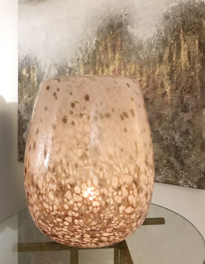 Ad aggiungere un ulteriore tocco di femminilità, numerosi dettagli dalle livree rosee e dorate si nascondono tra le pagine dei libri, riflettendosi nella luce soffusa che ci coccola a fine giornata. Una maxi tela dipinta a mano e delle delicate sculture da parete dal tema floreale vestono la parete di sfondo. L’atmosfera brilla grazie alle scenografiche lampade tempestate di cristalli, che donano un ulteriore tocco di magia alla composizione.